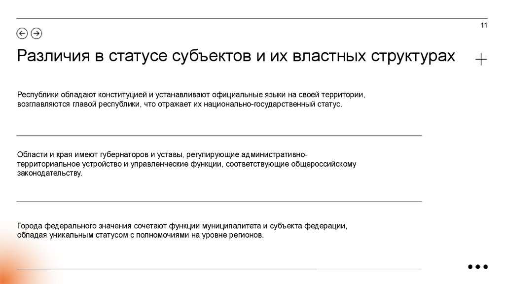 11Различия в статусе субъектов и их властных структурах
