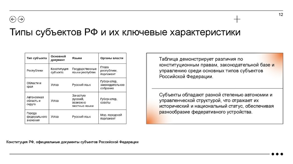 12Типы субъектов РФ и их ключевые характеристики