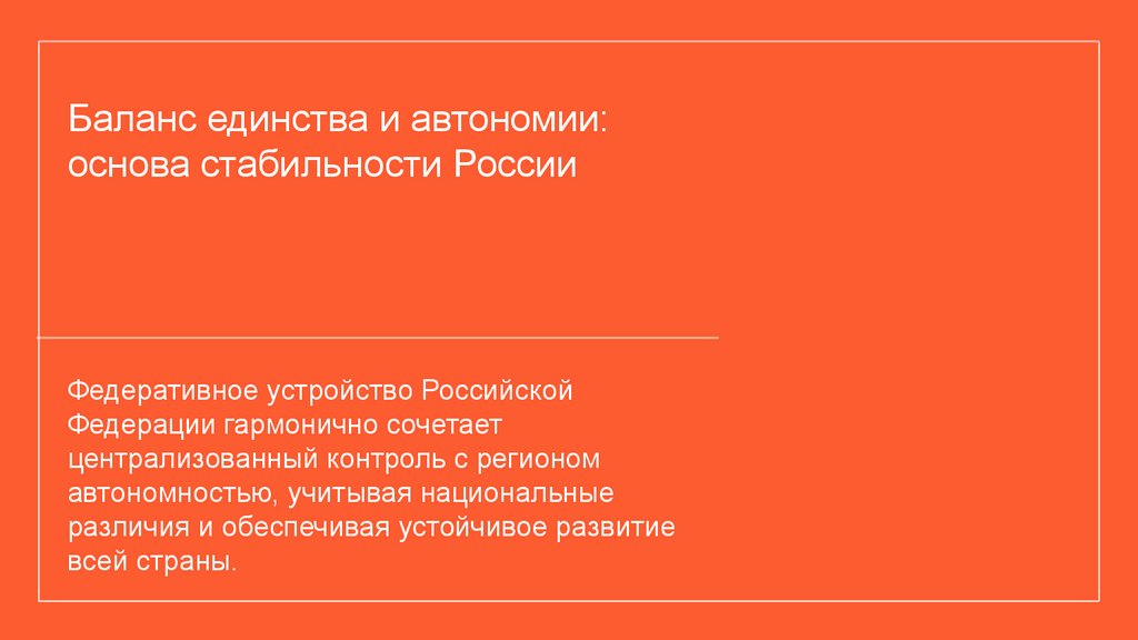 Баланс единства и автономии:основа стабильности России