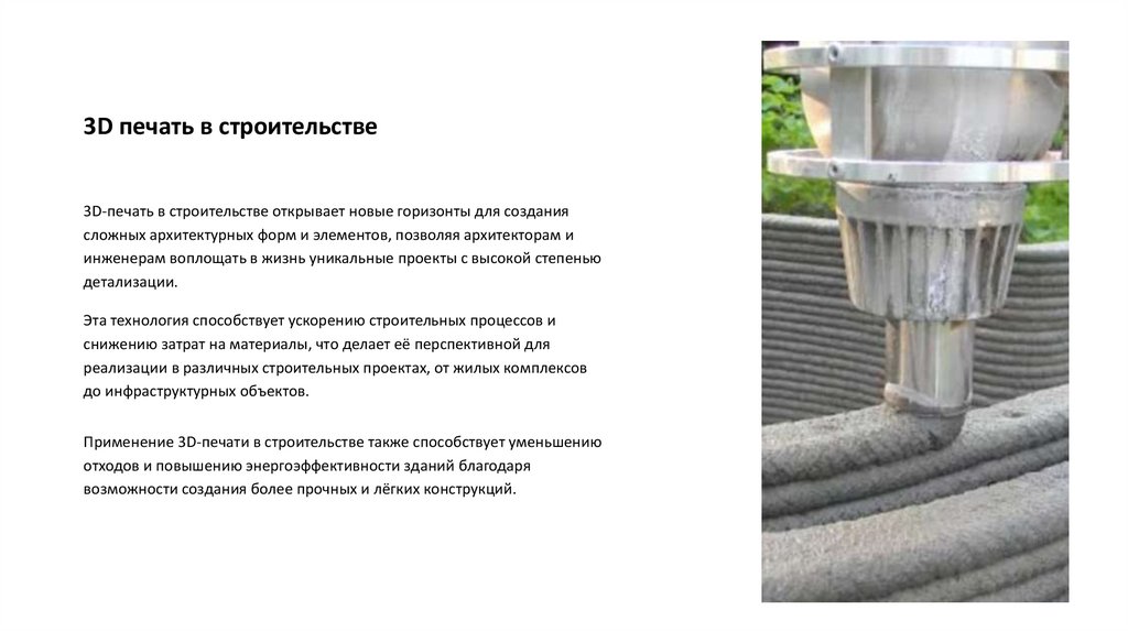 3D печать в строительстве3D-печать в строительстве открывает новые горизонты для создания