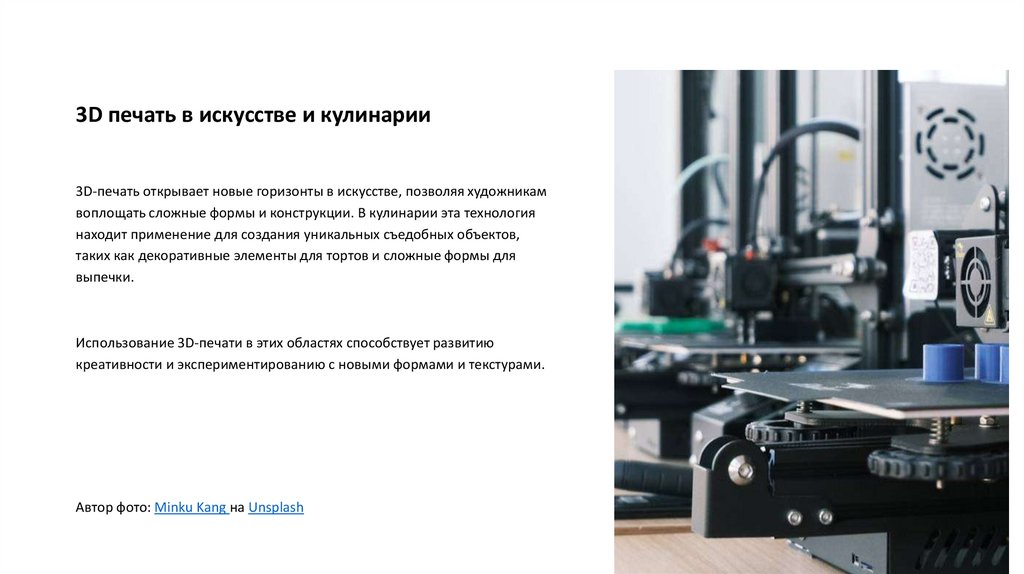 3D печать в искусстве и кулинарии3D-печать открывает новые горизонты в искусстве, позволяя художникам