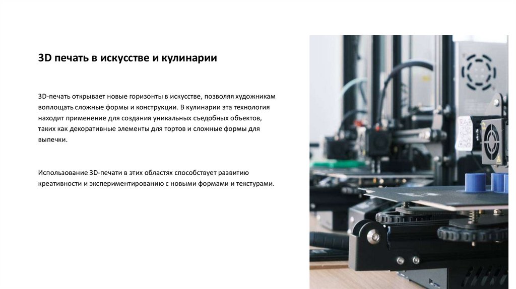 3D печать в искусстве и кулинарии3D-печать открывает новые горизонты в искусстве, позволяя художникам