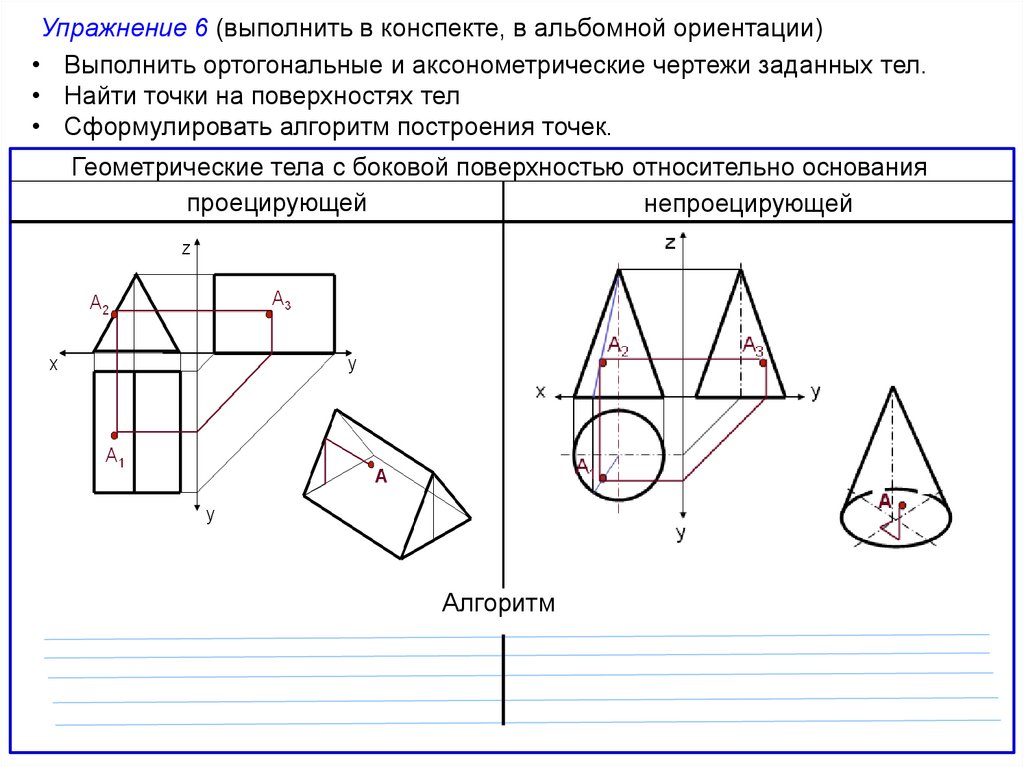 1. ГЕОМЕТРИЧЕСКИЕ ТЕЛА и точки на поверхностях тел