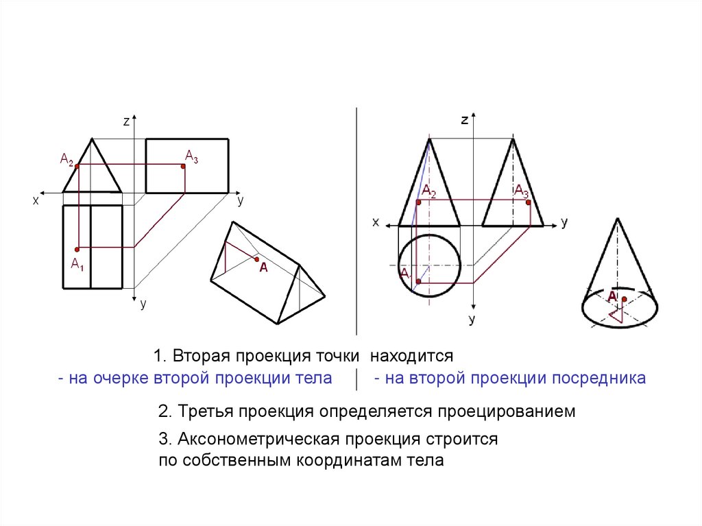 23. Нахождение точки на поверхности тела, боковая поверхность которого расположена наклонно к плоскости основания (тело с