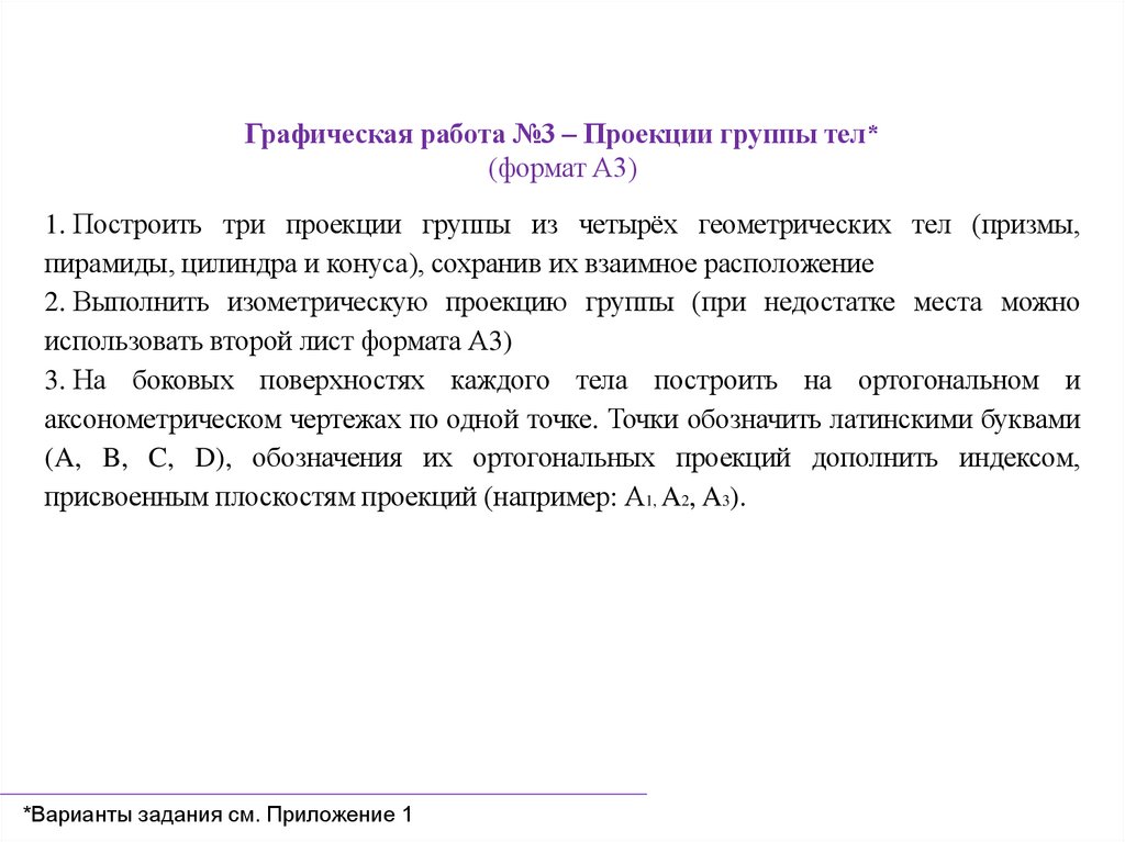 Графическая работа №3 – Проекции группы тел*(формат А3)