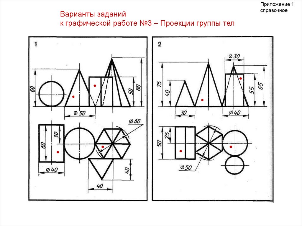 Варианты заданийк графической работе №3 – Проекции группы тел