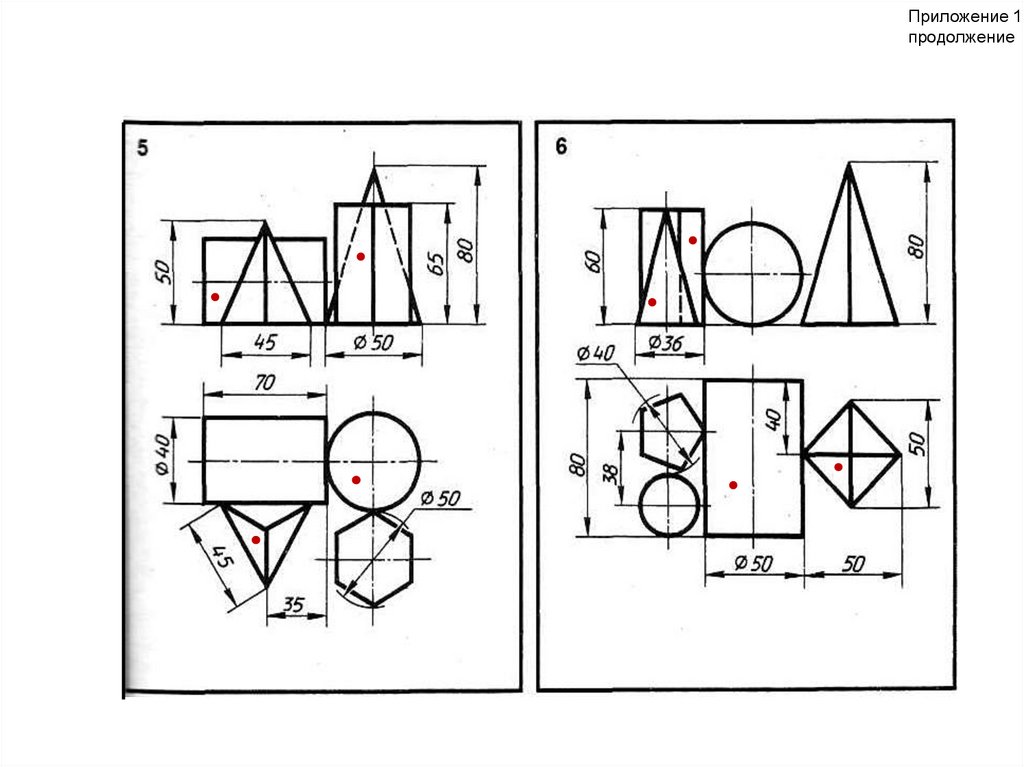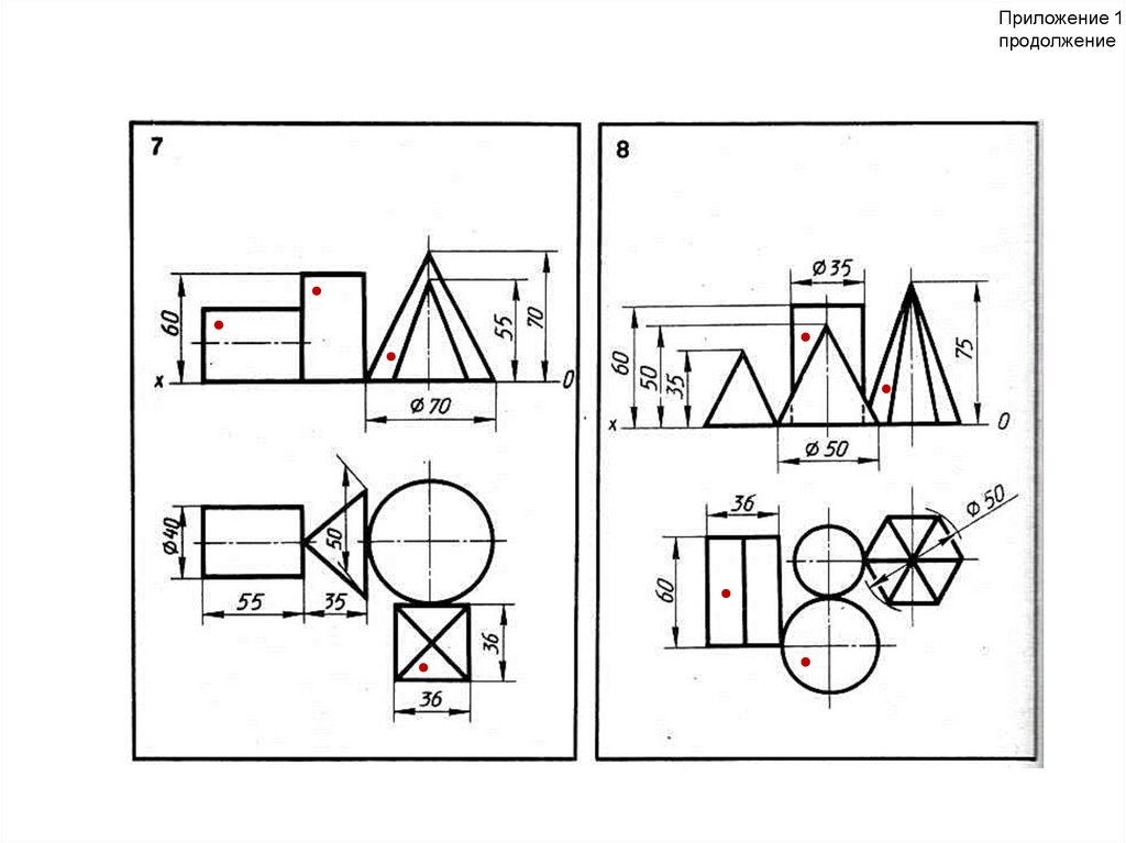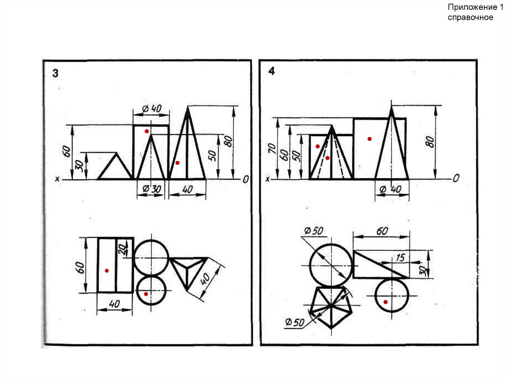 1. Построить три проекции группы из четырёх геометрических тел (призмы,