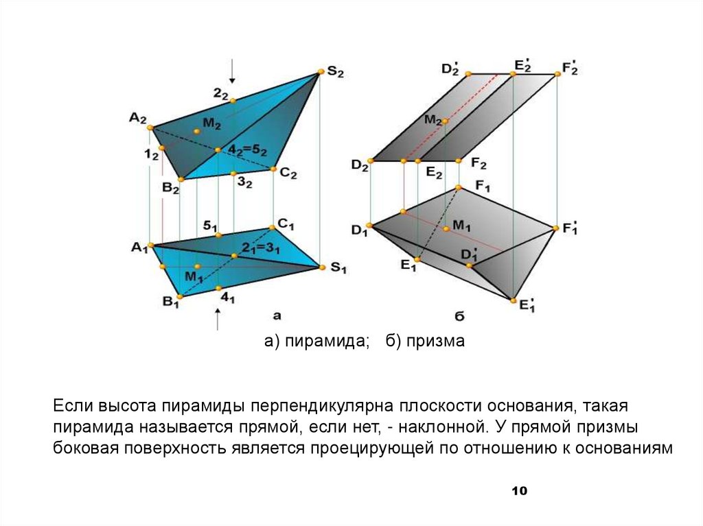 пирамида называется прямой, если нет, - наклонной. У прямой призмы