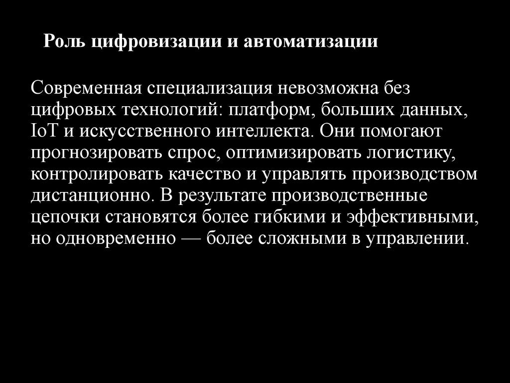 Роль цифровизации и автоматизацииСовременная специализация невозможна без