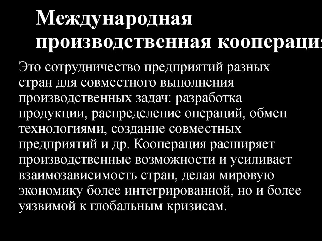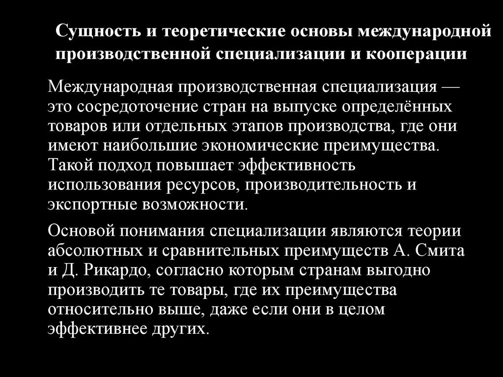 Сущность и теоретические основы международнойпроизводственной специализации и кооперации