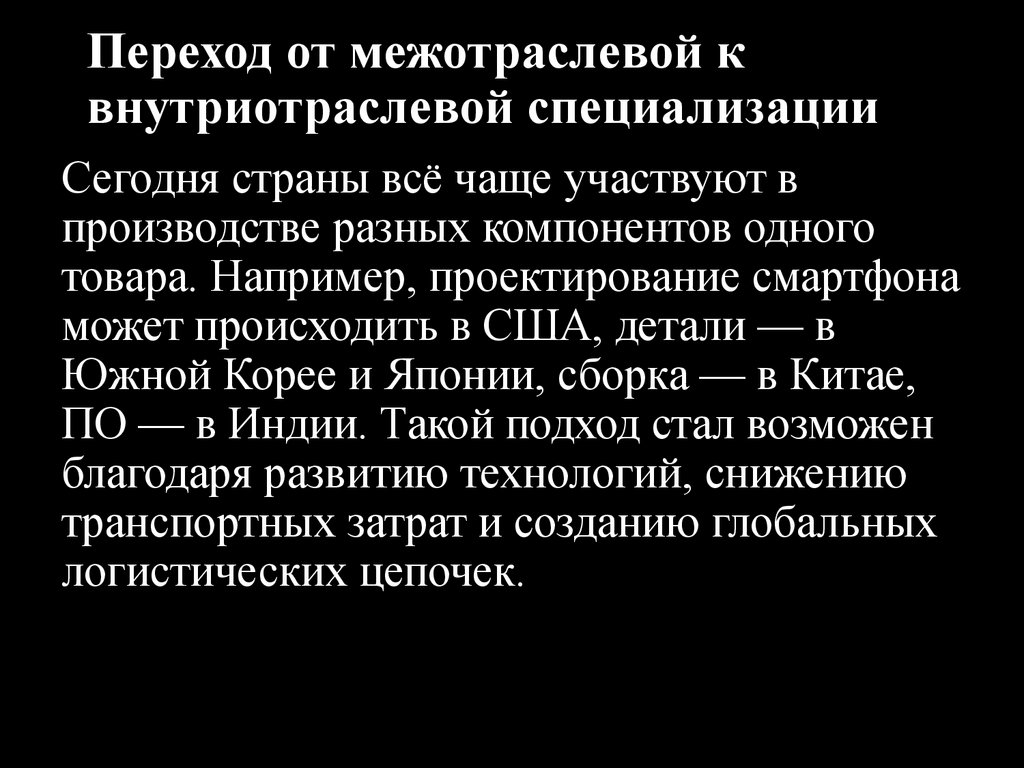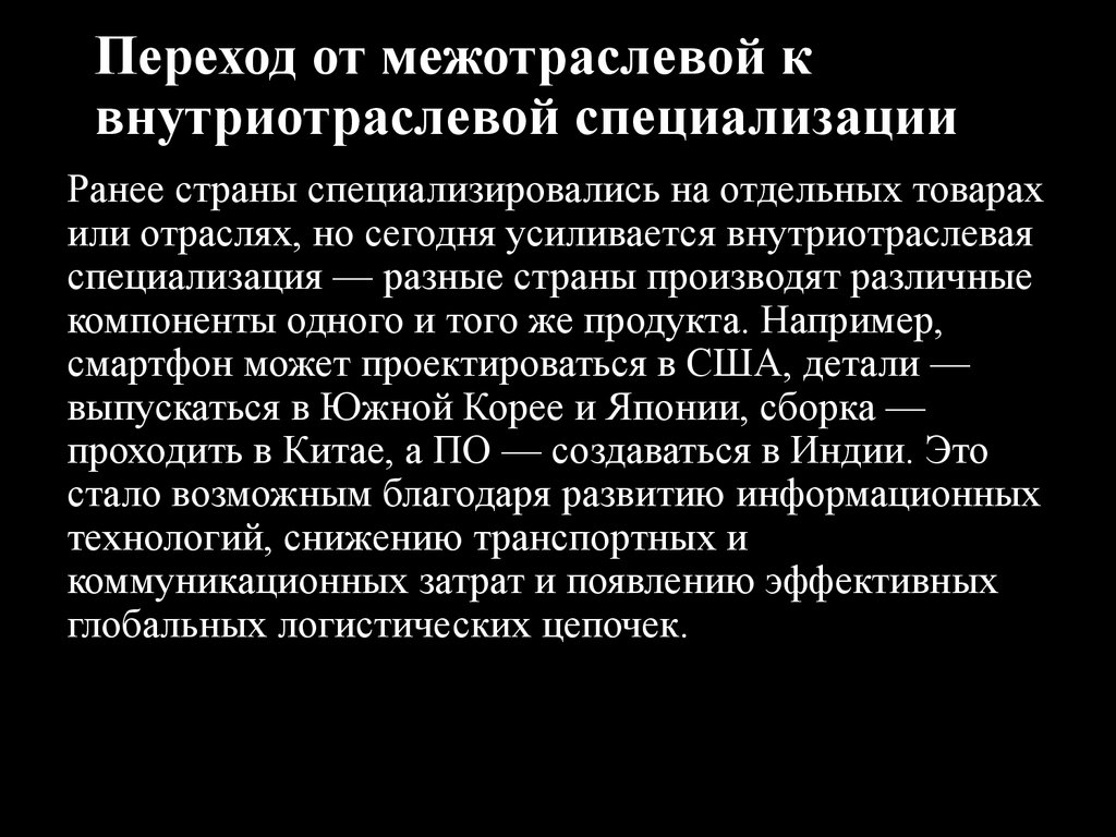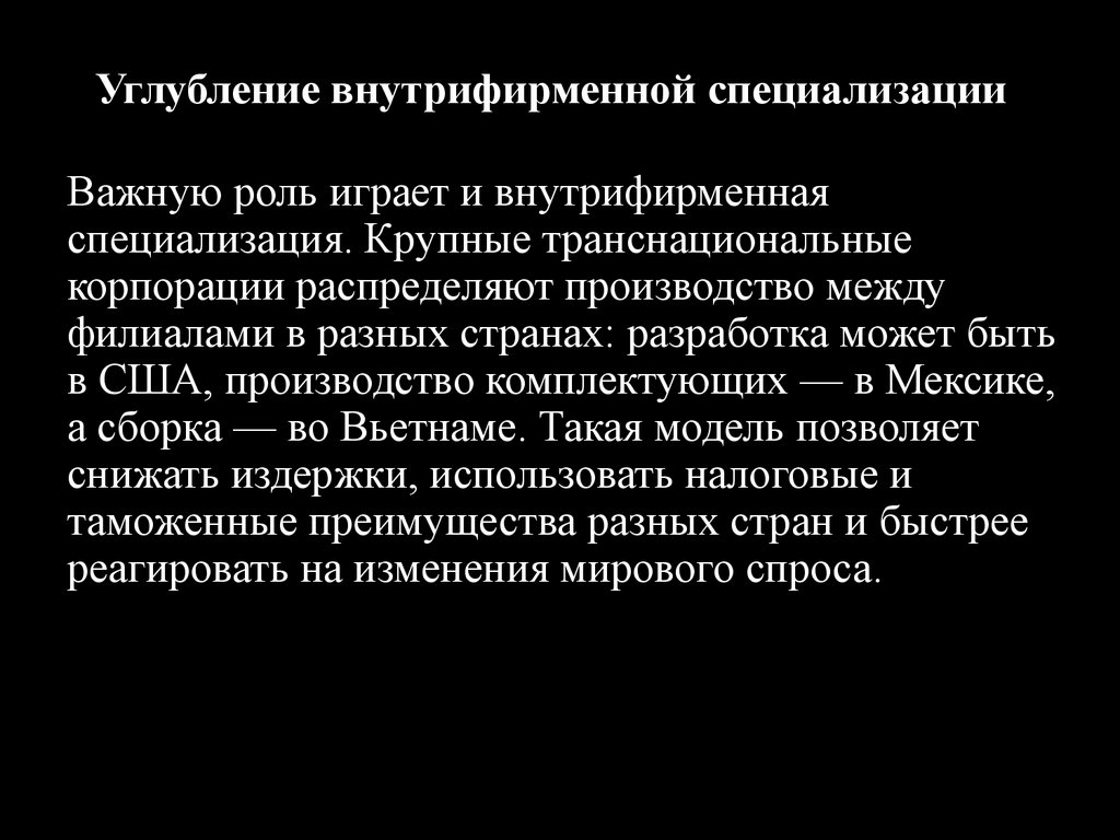 Углубление внутрифирменной специализацииВажную роль играет и внутрифирменная