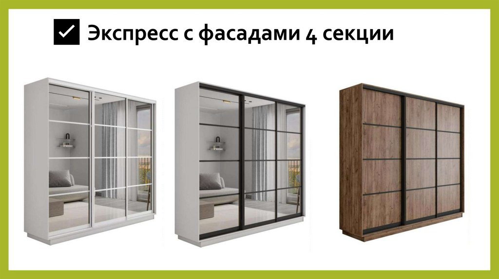 • ✅ Экспресс с фасадами 4 секции• ✔Мгновенный подбор фасада - 7 комбинаций готовых решений
