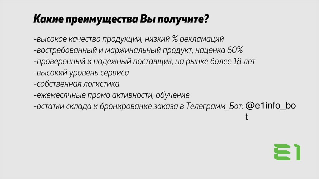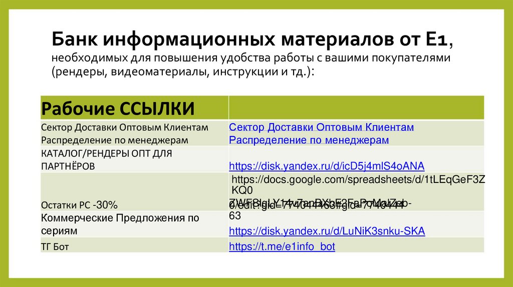 Банк информационных материалов от Е1,необходимых для повышения удобства работы с вашими покупателями