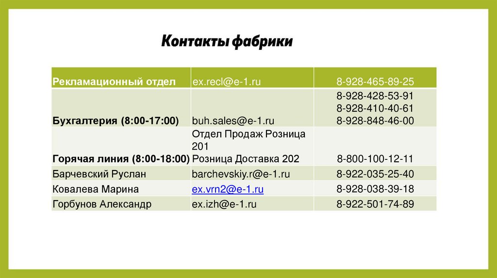 Рекламационный отделБухгалтерия (8:00-17:00)