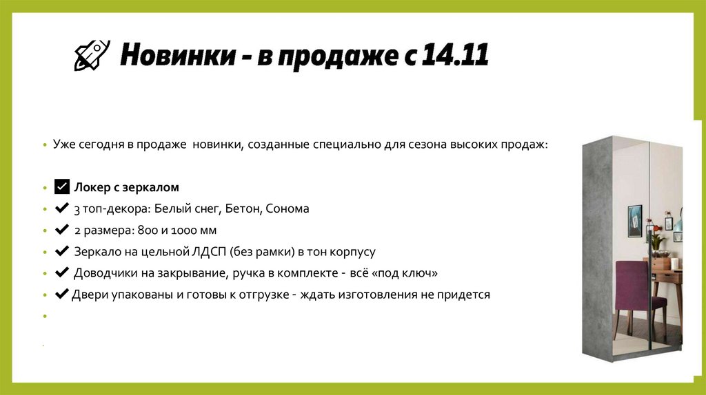 • Уже сегодня в продаже новинки, созданные специально для сезона высоких продаж:• ✅ Локер с зеркалом
