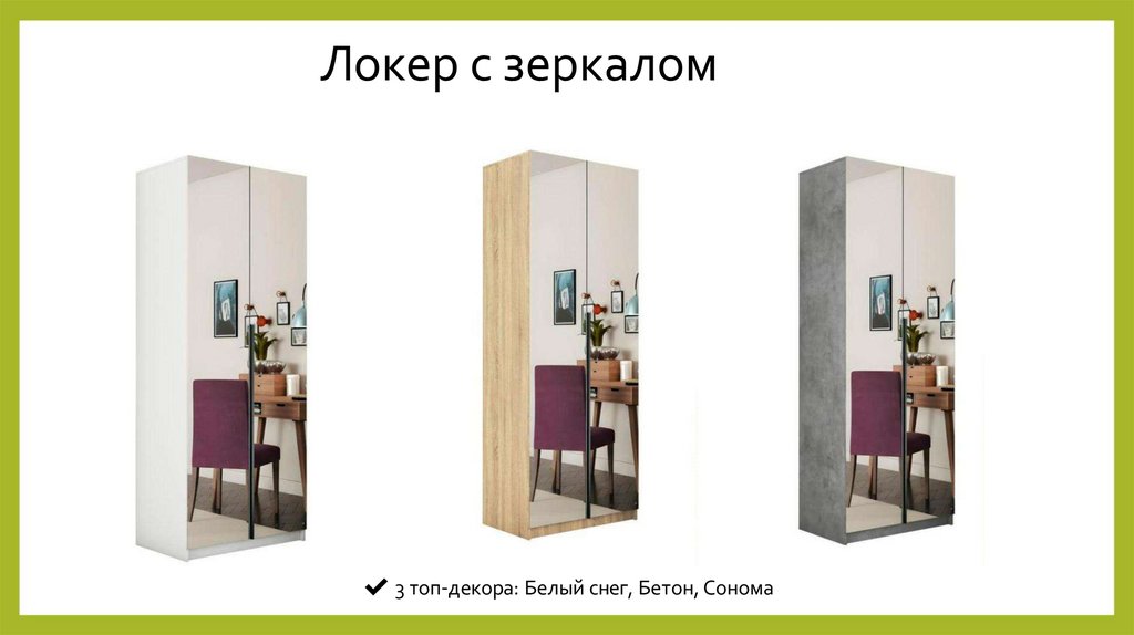 Локер с зеркалом✔ 3 топ-декора: Белый снег, Бетон, Сонома