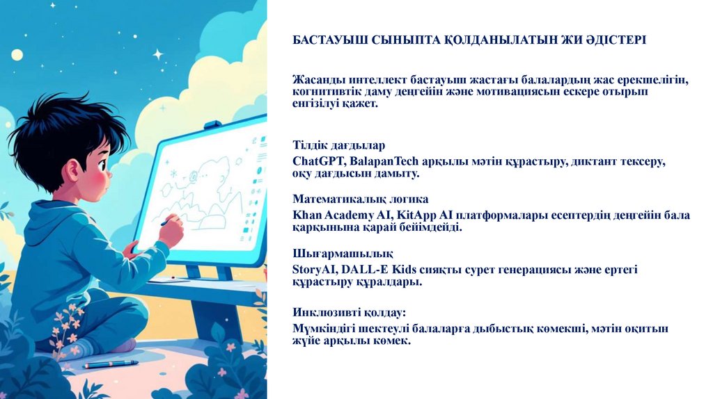 БАСТАУЫШ СЫНЫПТА ҚОЛДАНЫЛАТЫН ЖИ ӘДІСТЕРІЖасанды интеллект бастауыш жастағы балалардың жас ерекшелігін,