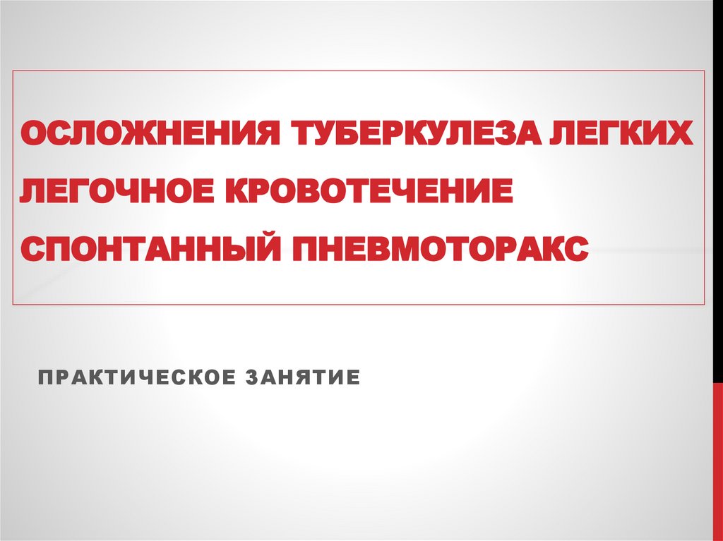 1. Осложнения туберкулеза легких легочное кровотечение спонтанный пневмоторакс