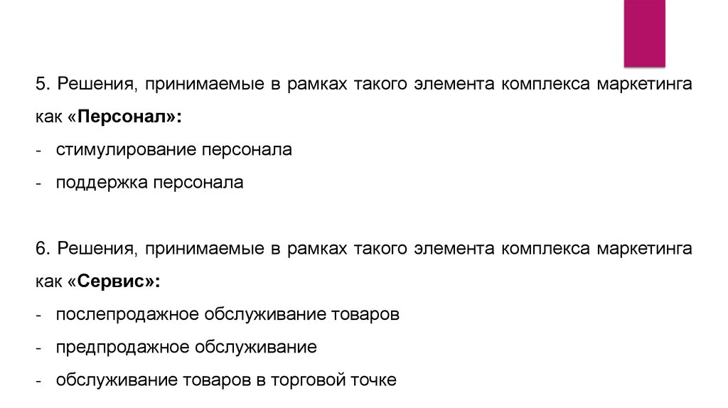 6. Решения, принимаемые в рамках такого элемента комплекса маркетинга