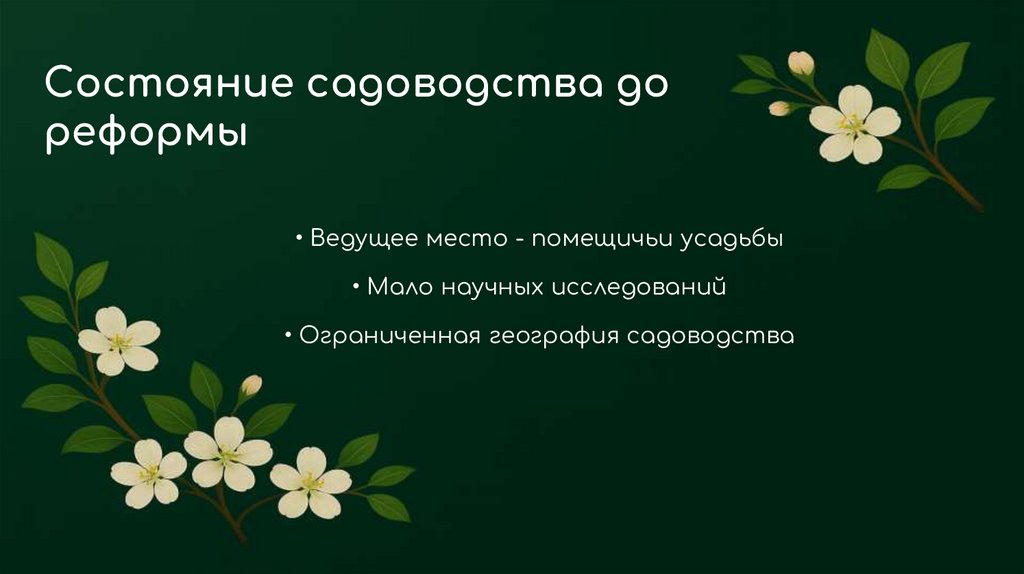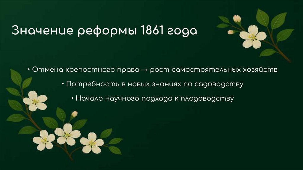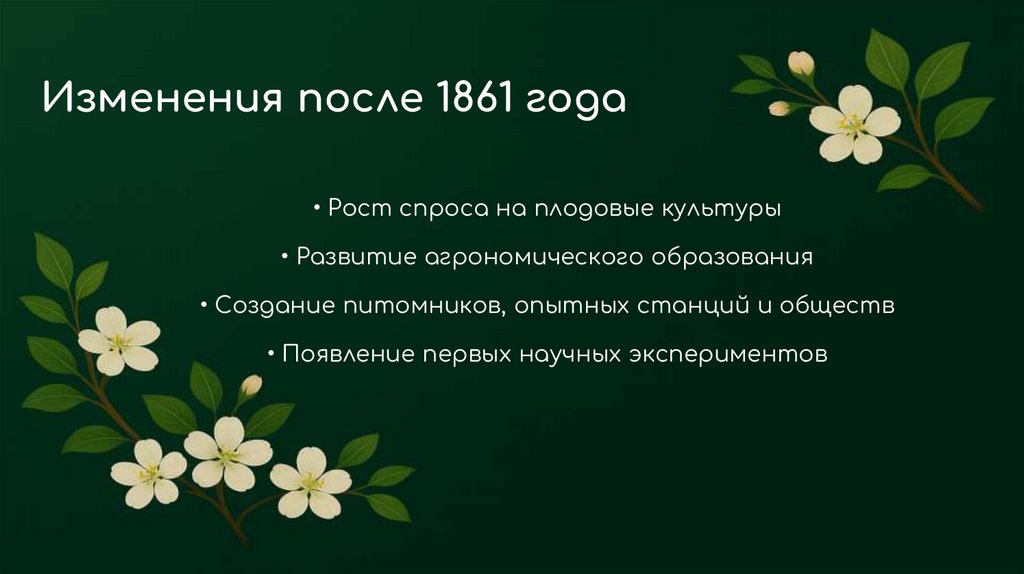 Изменения после 1861 года• Рост спроса на плодовые культуры