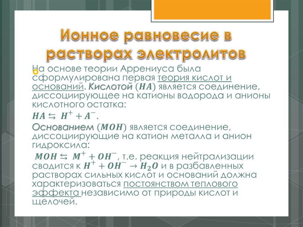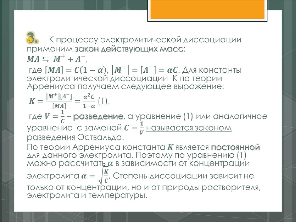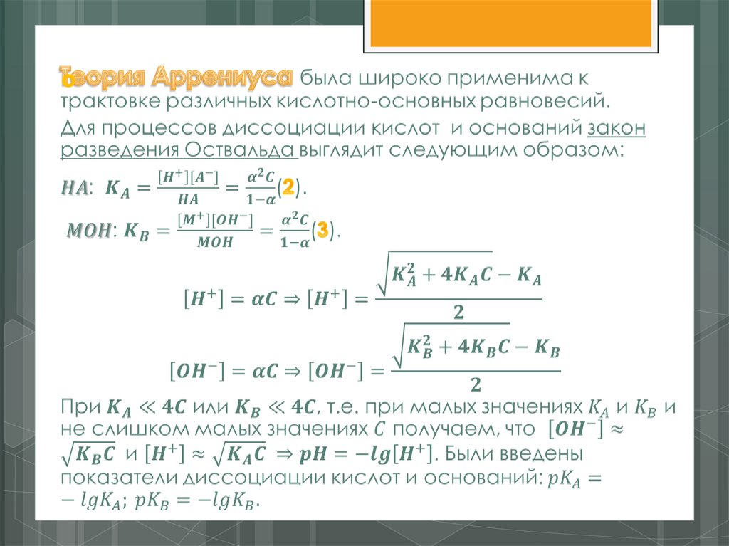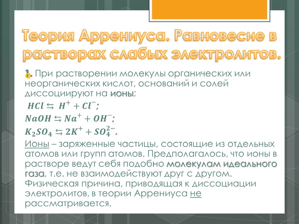 8. Теория Аррениуса. Равновесие в растворах слабых электролитов.