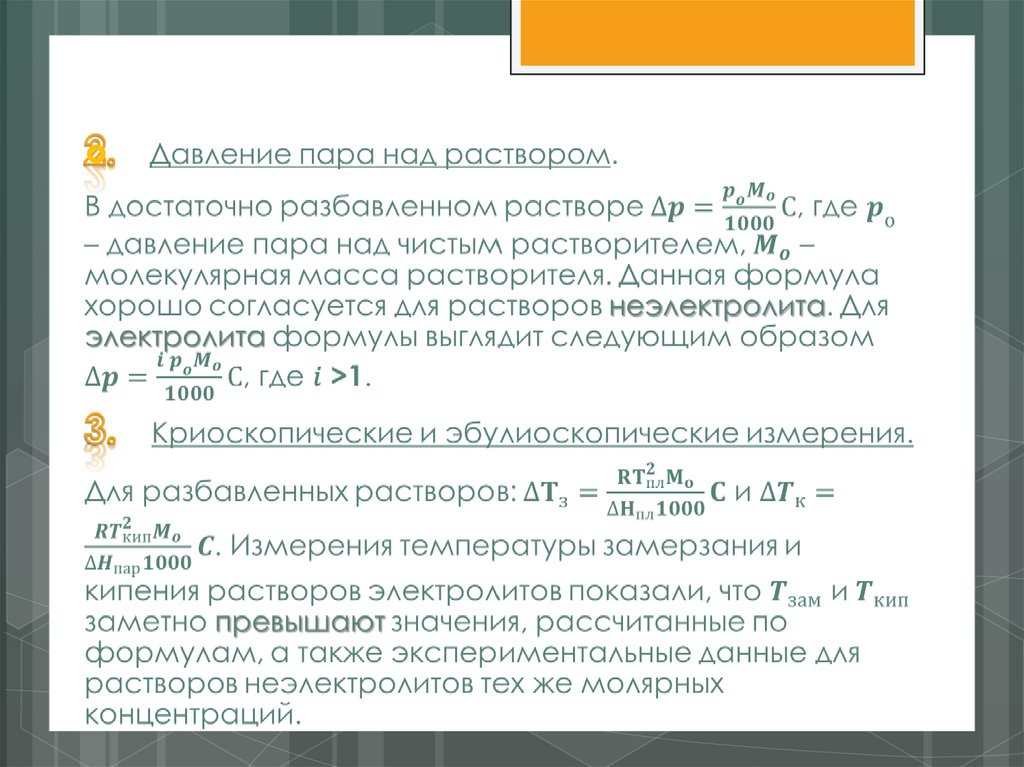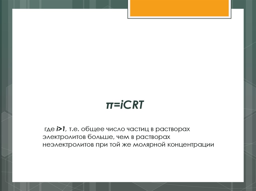 π=iCRTгде i>1, т.е. общее число частиц в растворах