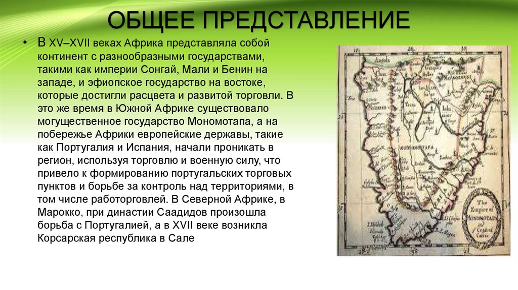 ОБЩЕЕ ПРЕДСТАВЛЕНИЕ• В XV–XVII веках Африка представляла собой
