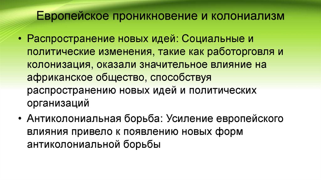 Европейское проникновение и колониализм• Распространение новых идей: Социальные и