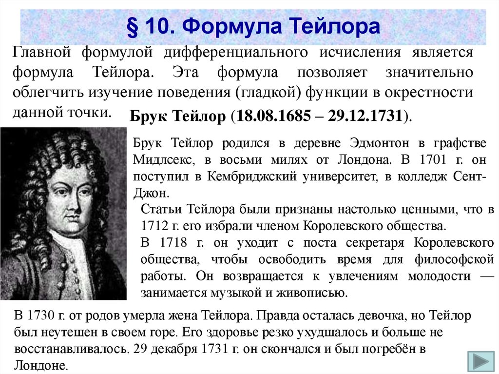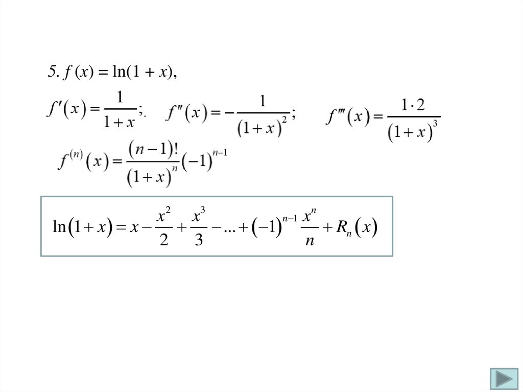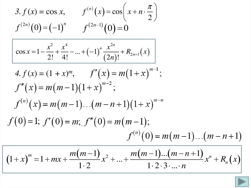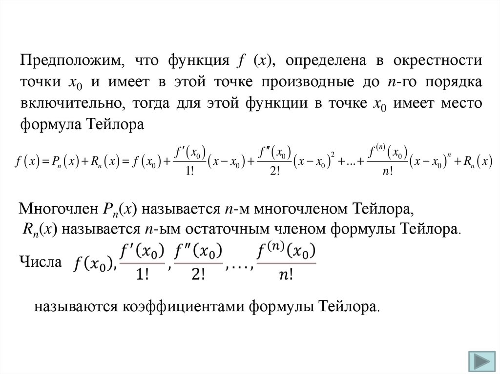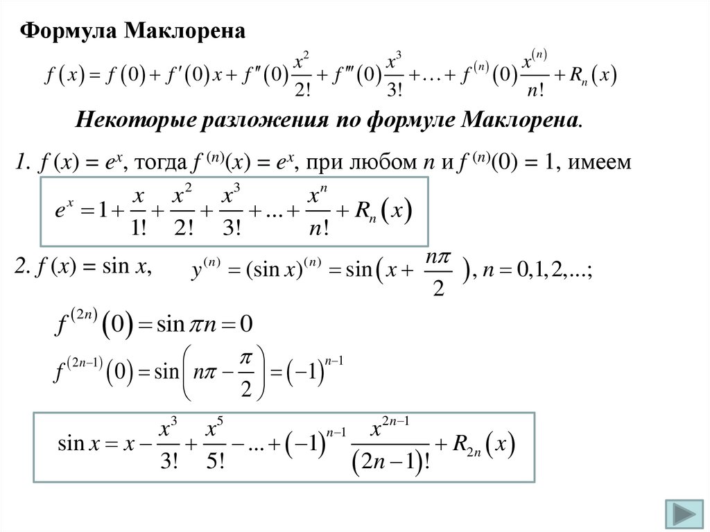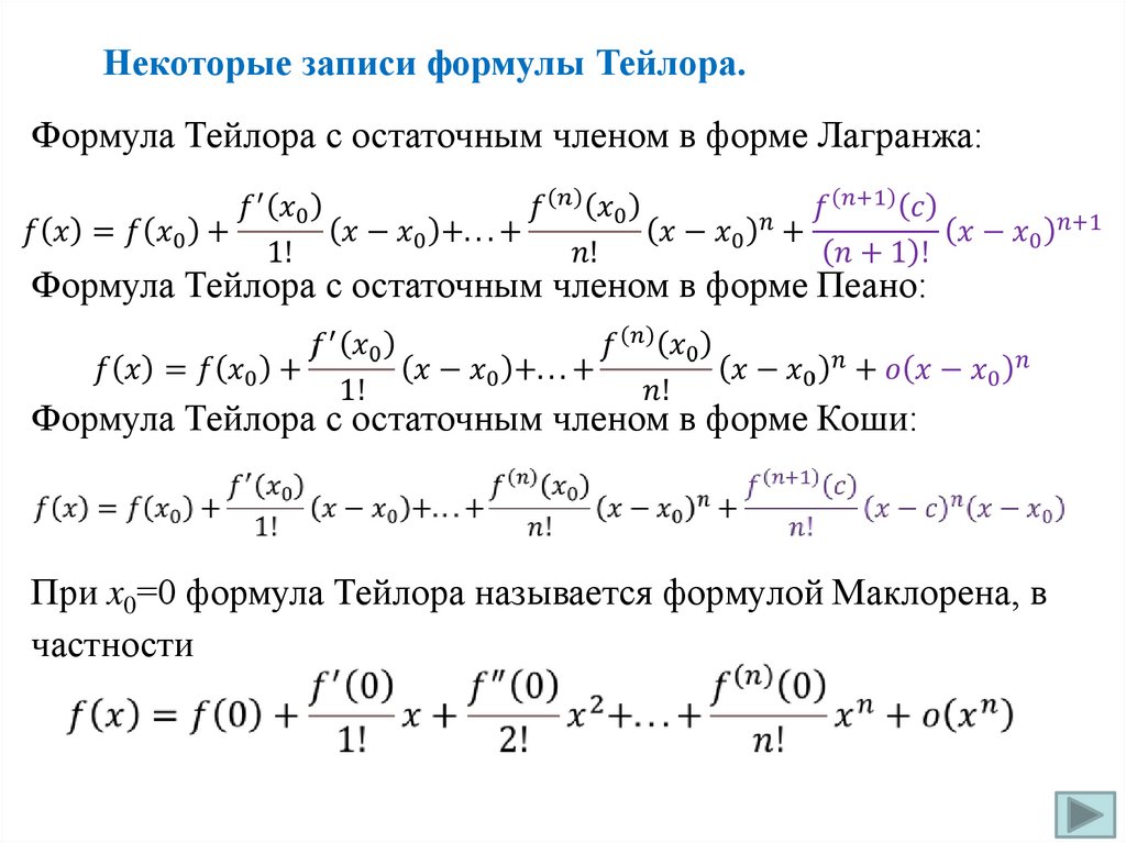 При x0=0 формула Тейлора называется формулой Маклорена, в