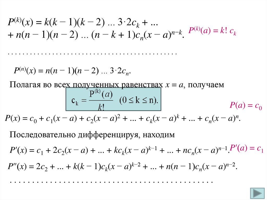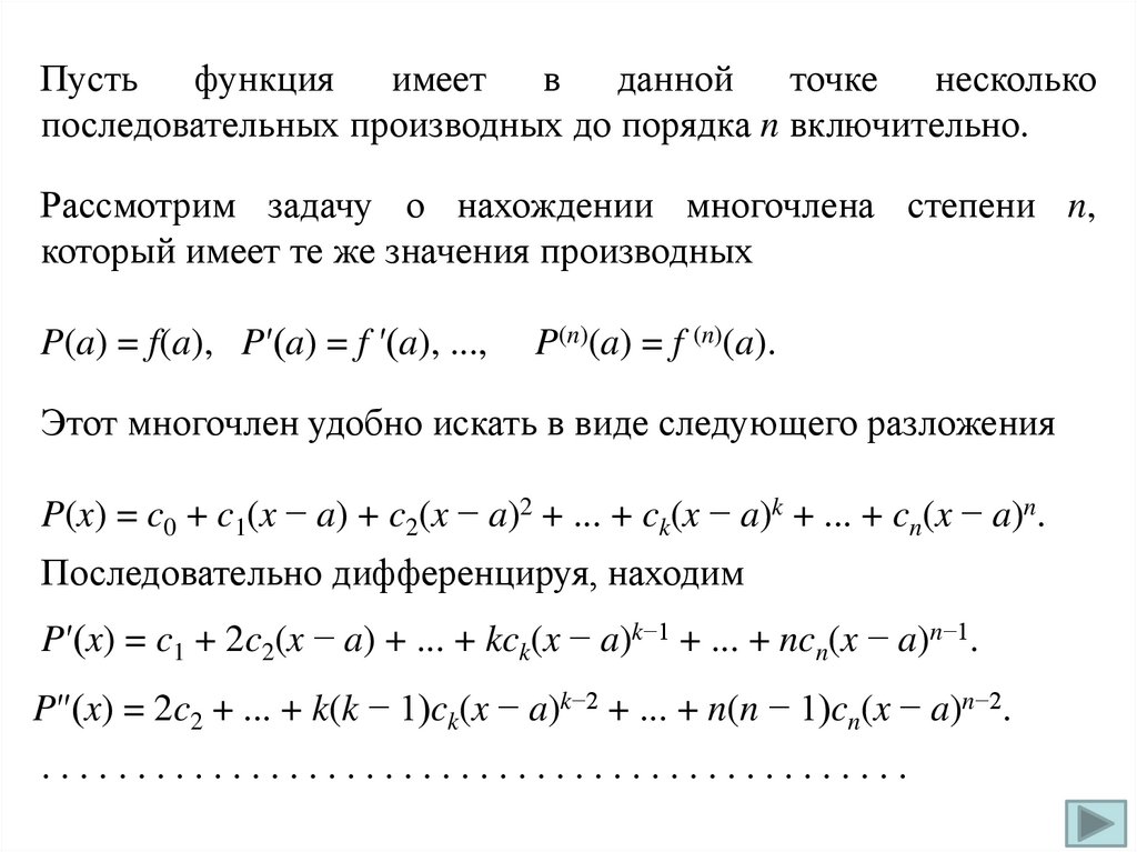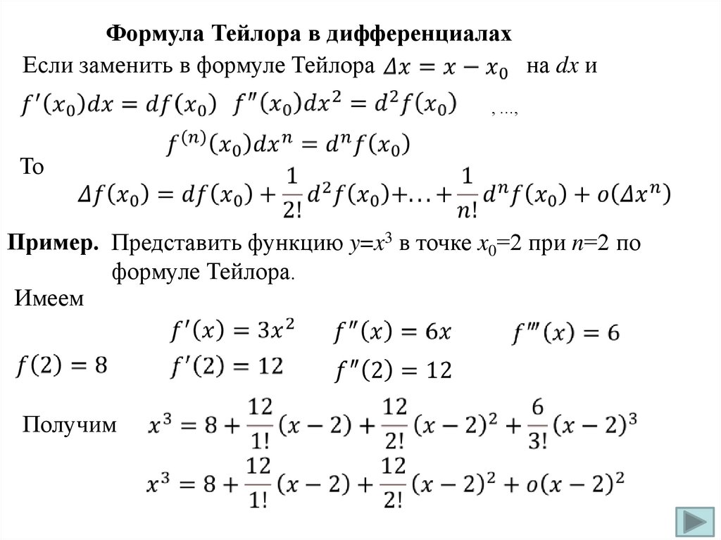 Формула Тейлора в дифференциалахЕсли заменить в формуле Тейлора