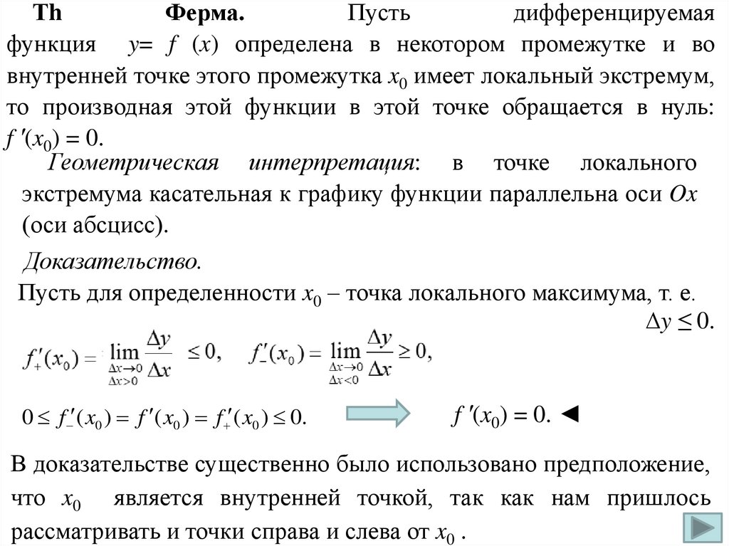 внутренней точке этого промежутка x0 имеет локальный экстремум,