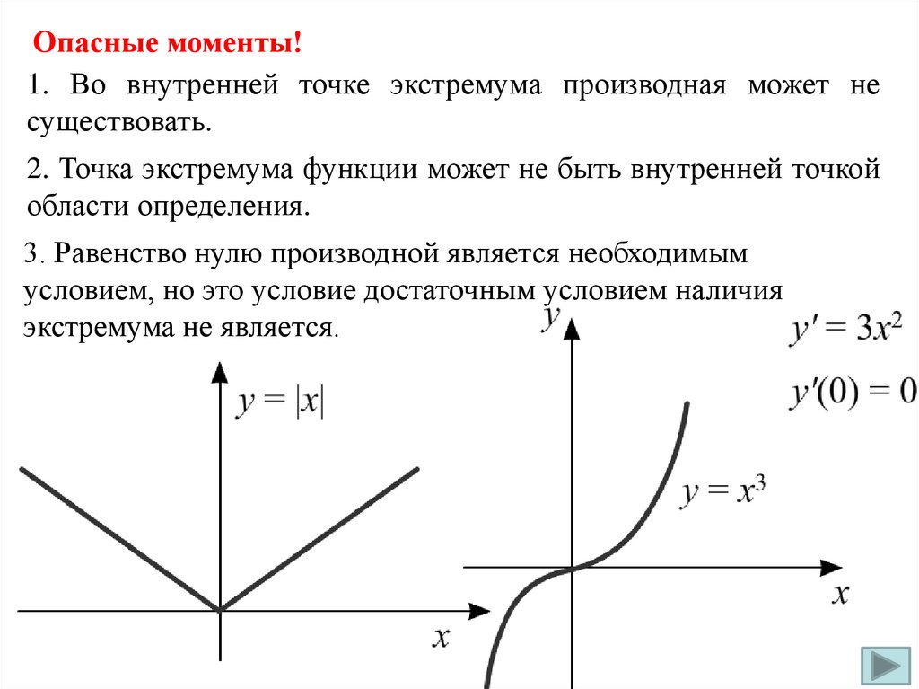 Опасные моменты!1. Во внутренней точке экстремума производная может не