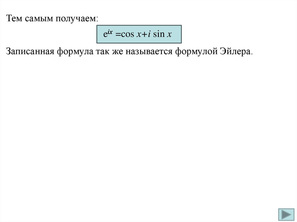 чисел. Рассмотрим e i x , где i — мнимая единица. Будем