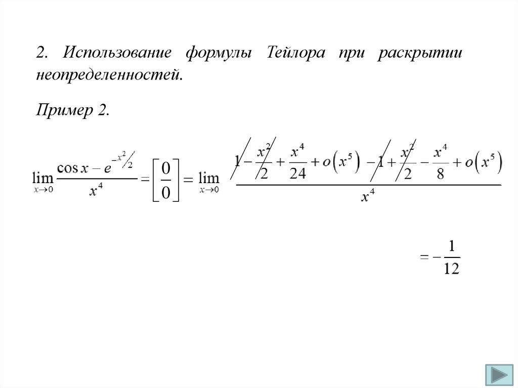2. Использование формулы Тейлора при раскрытиинеопределенностей.