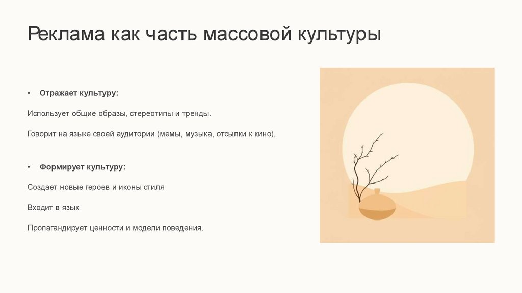 Заключение: Реклама неотъемлемая частьмассовой культуры.