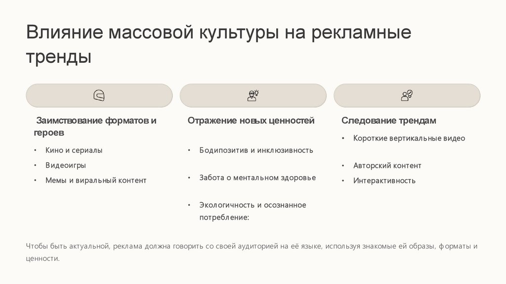 Чтобы быть актуальной, реклама должна говорить со своей аудиторией на её языке, используя знакомые ей образы, ф орматы и