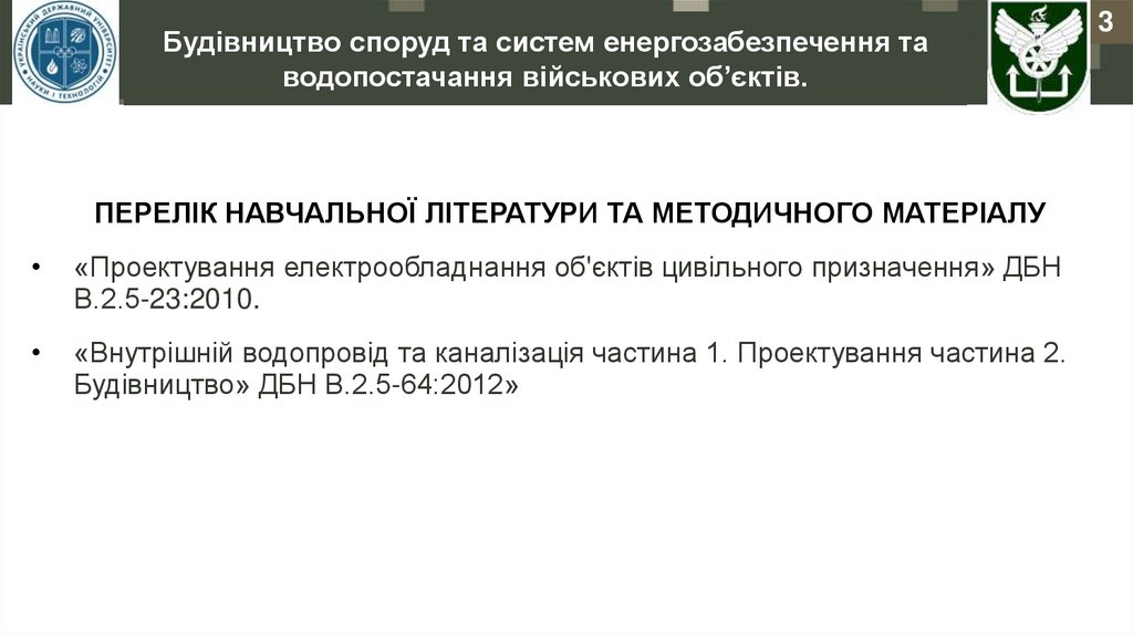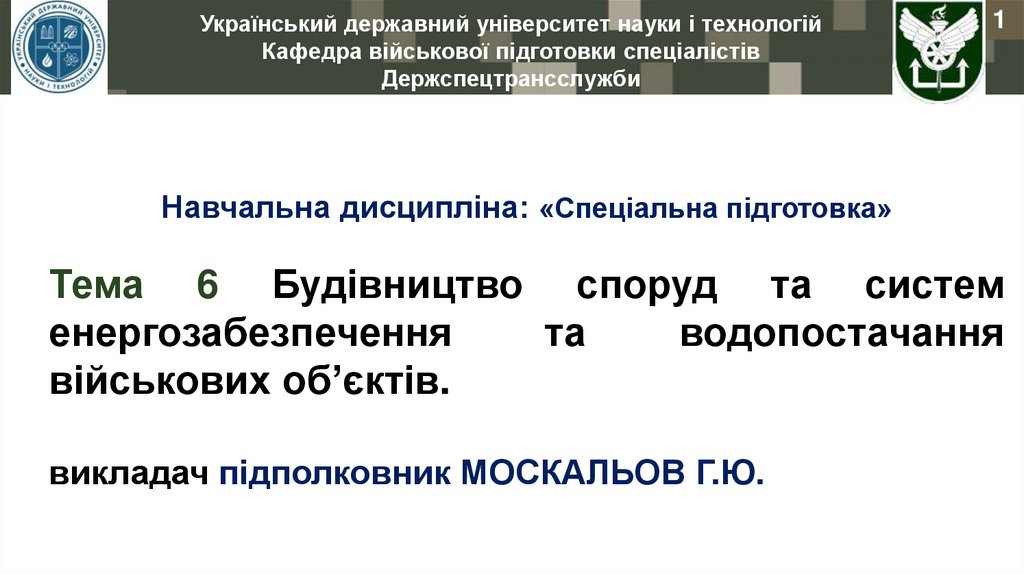 Український державний університет науки і технологійКафедра військової підготовки спеціалістів