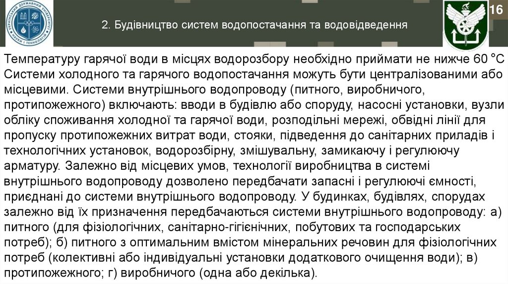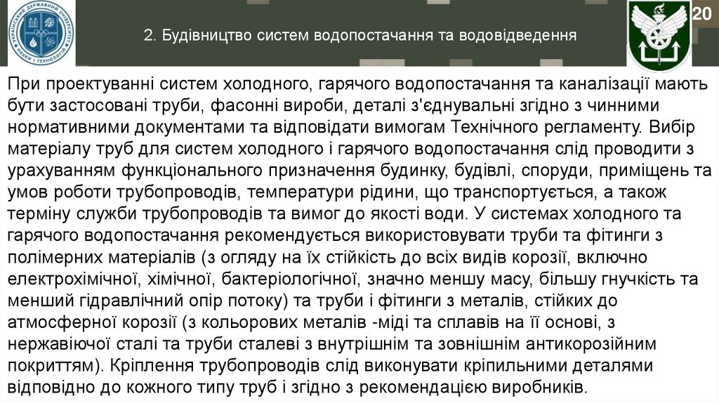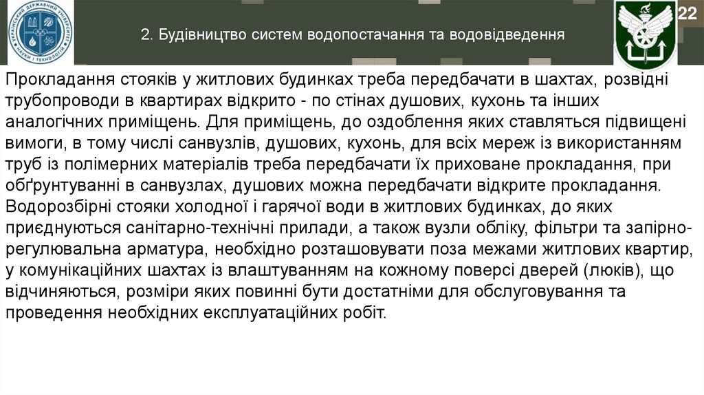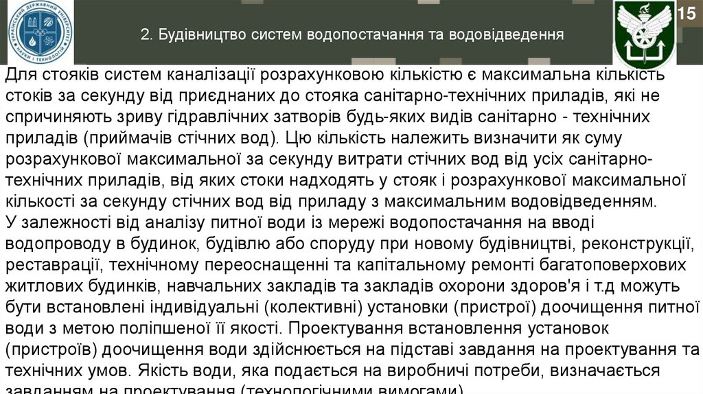 «Внутрішній водопровід та каналізація частина 1. Проектування частина 2.