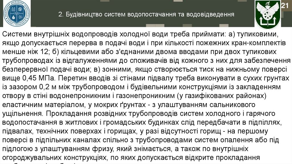 вище 0,45 МПа. Перетин вводів зі стінами підвалу треба виконувати в сухих грунтах