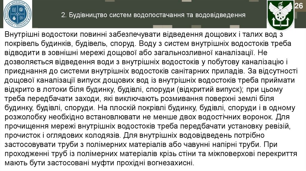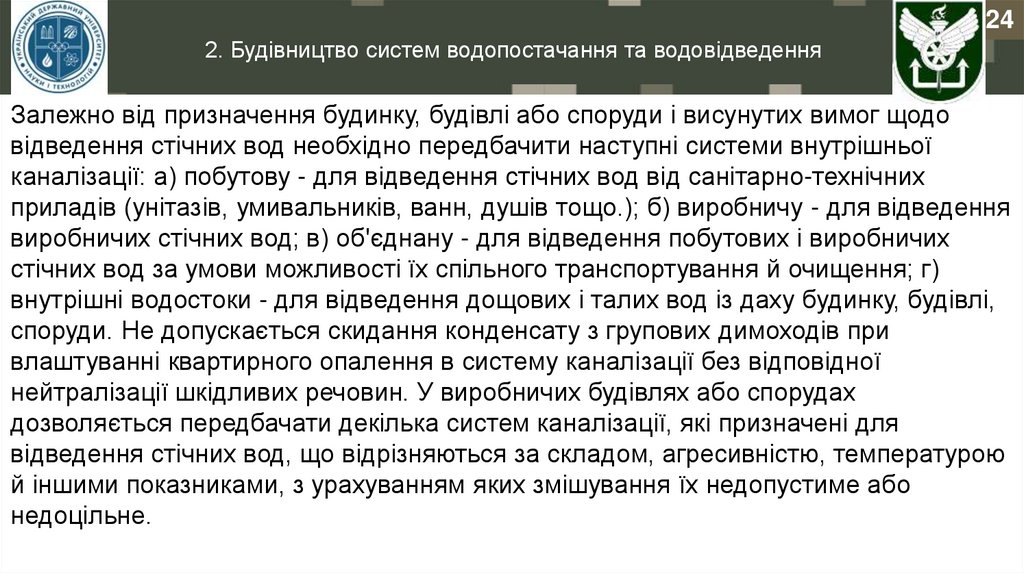 відведення стічних вод необхідно передбачити наступні системи внутрішньої