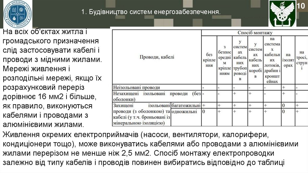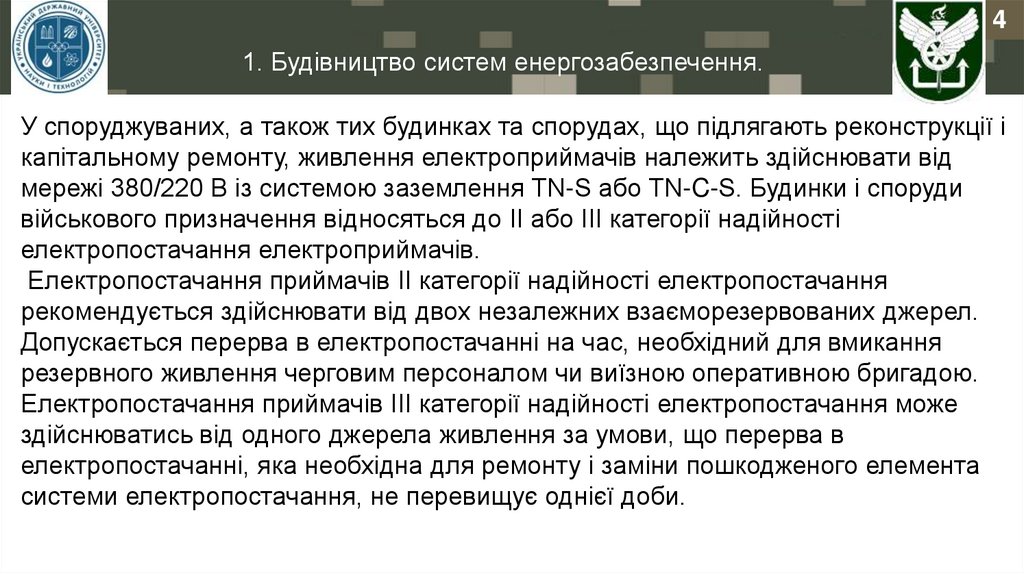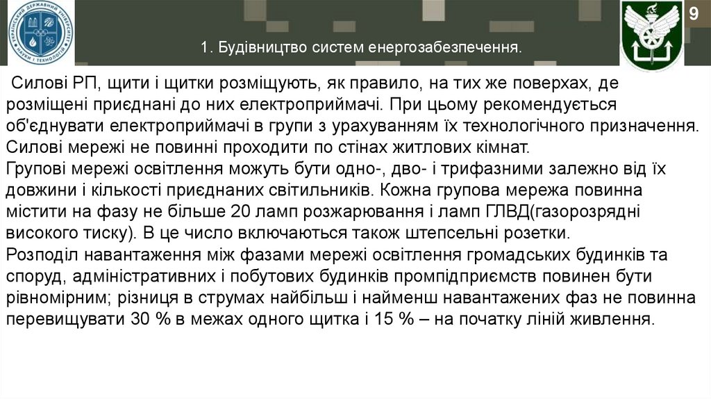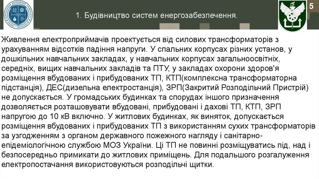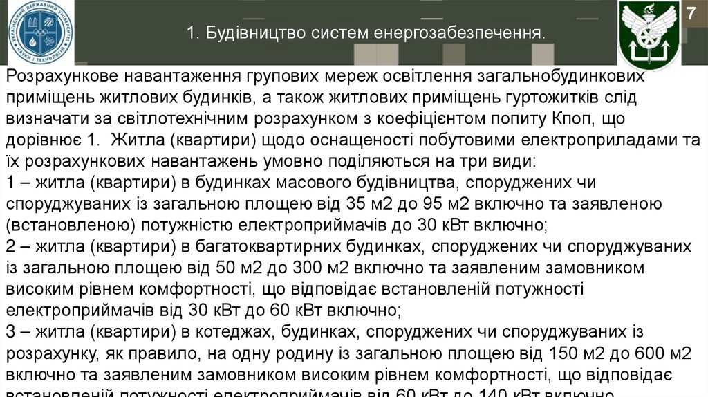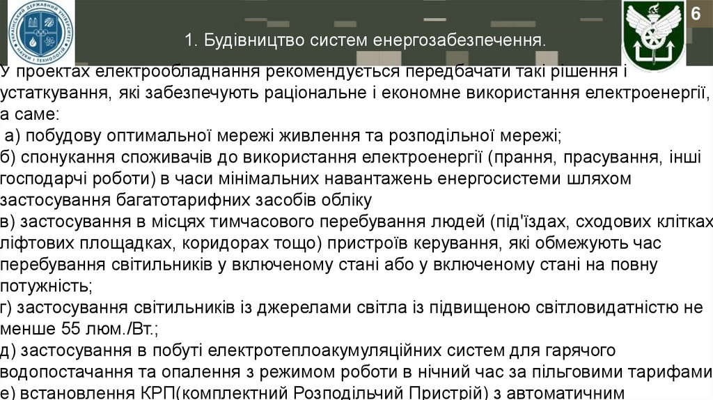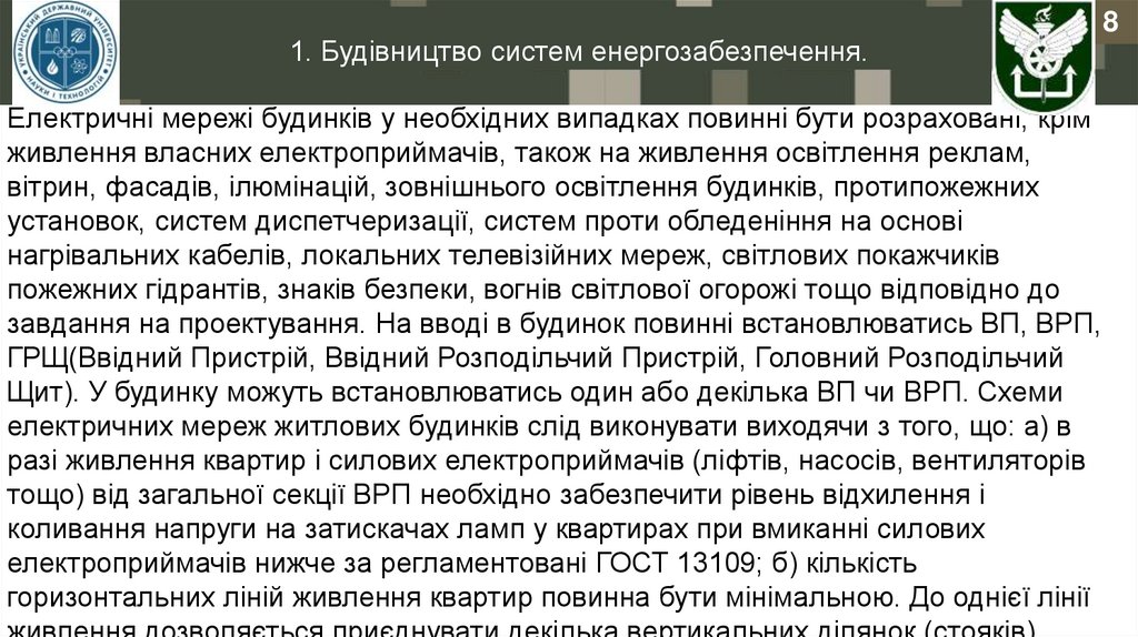 1. Будівництво систем енергозабезпечення.Електричні мережі будинків у необхідних випадках повинні бути розраховані, крім