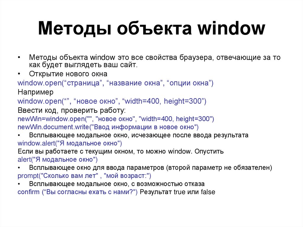 1. Методы объекта window