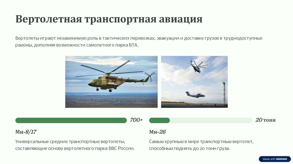 Вертолетная транспортная авиацияВертолеты играют незаменимую роль в тактических перевозках, эвакуации и доставке грузов в труднодоступные