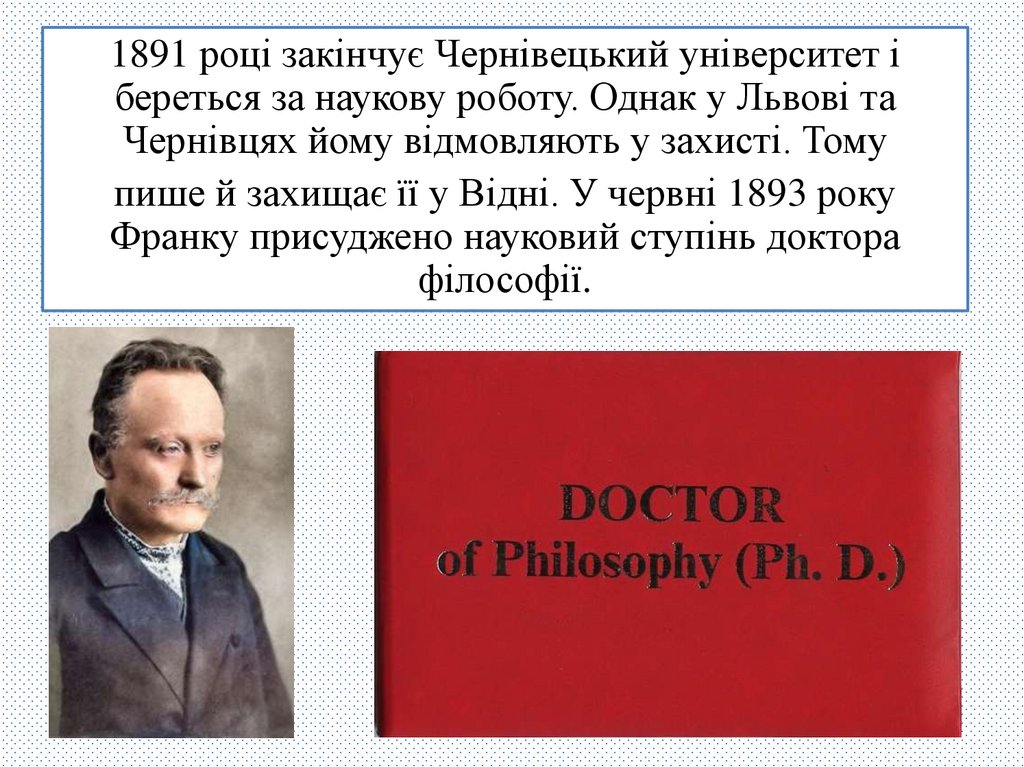 1891 році закінчує Чернівецький університет ібереться за наукову роботу. Однак у Львові та
