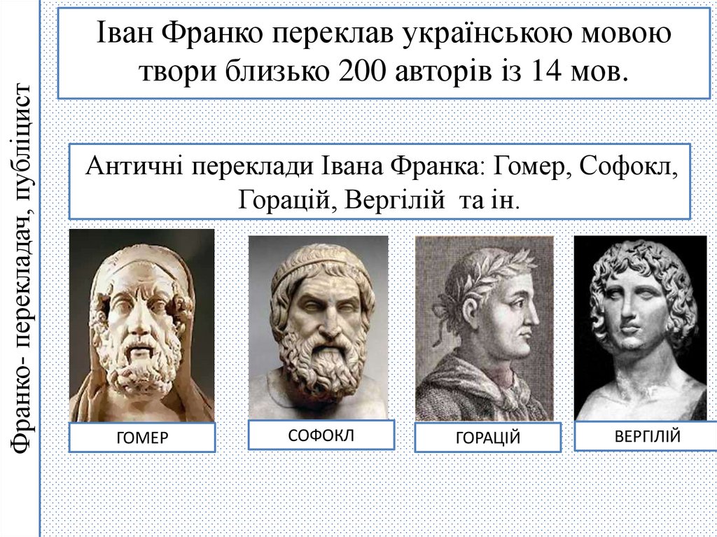 Франко- перекладач, публіцистФранко написав чимало публіцистичних