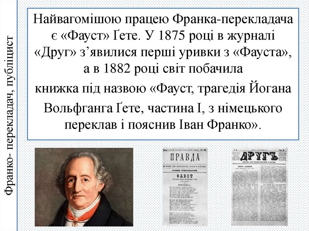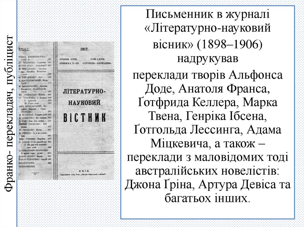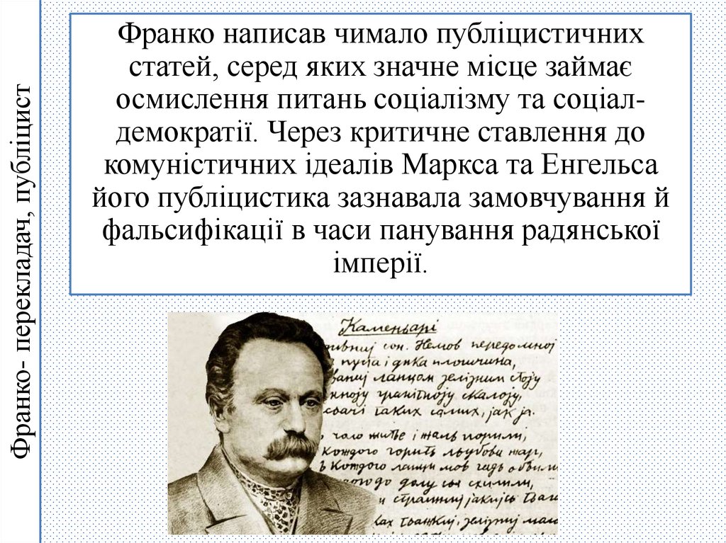 політичнийрозвиток України. Франкоперекладач, публіцист. Значення