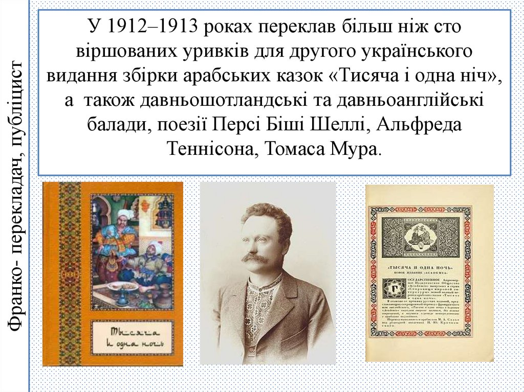 Франко- перекладач, публіцистОсобливе місце в доробку Франка-перекладача