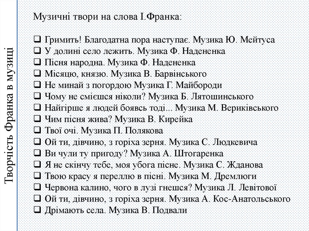 Творчість Франка в музиціМузичні твори на слова І.Франка: