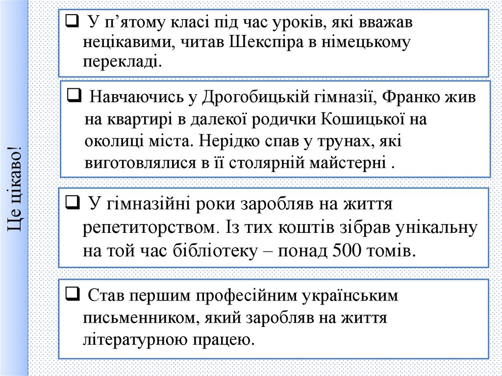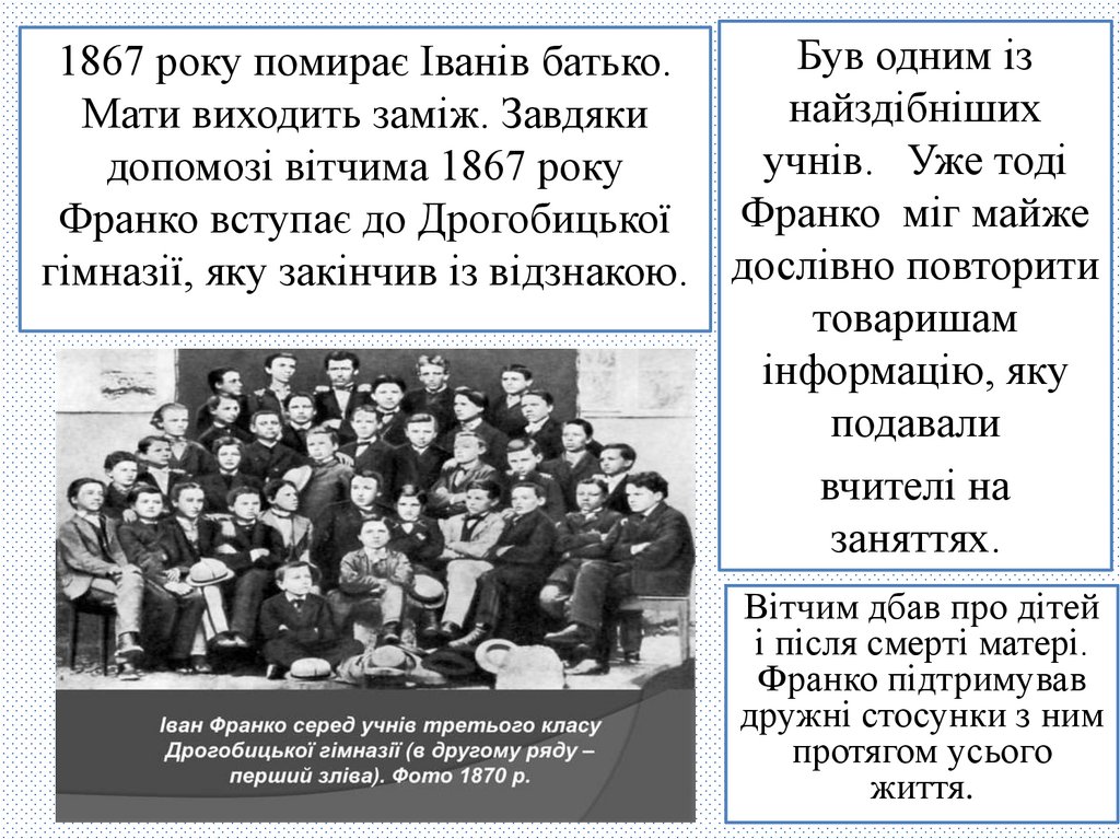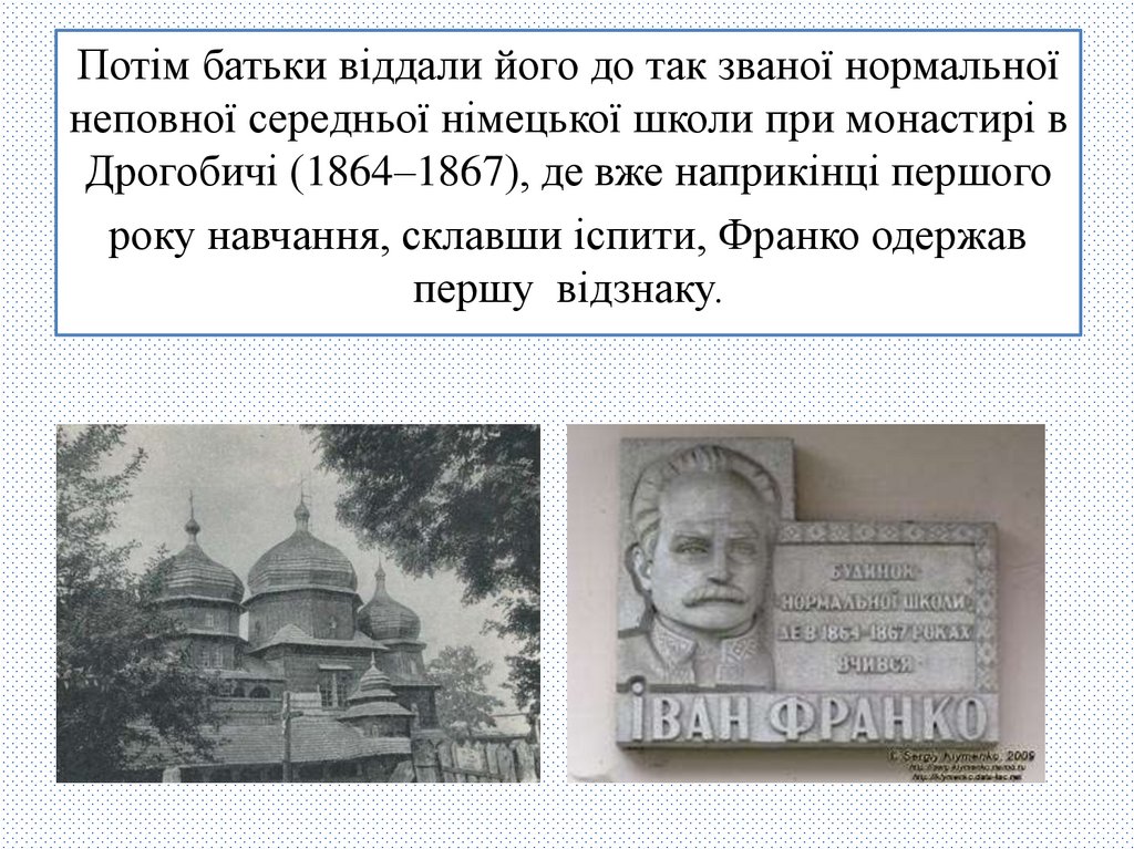 Навчаючись у Дрогобицькій гімназії, Франко жив