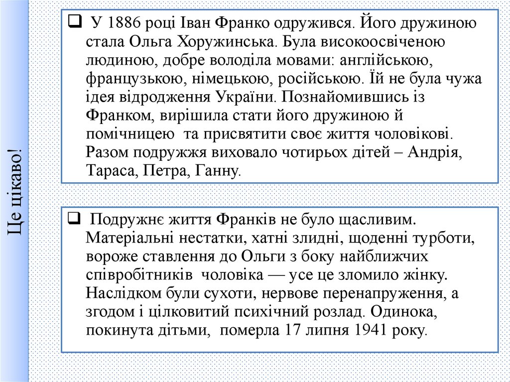 Це цікаво!У 1886 році Іван Франко одружився. Його дружиною